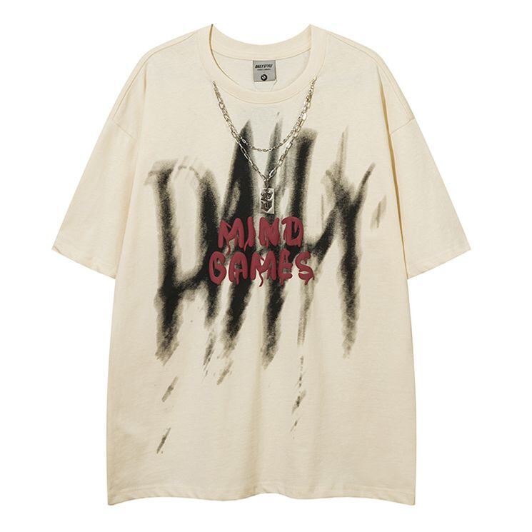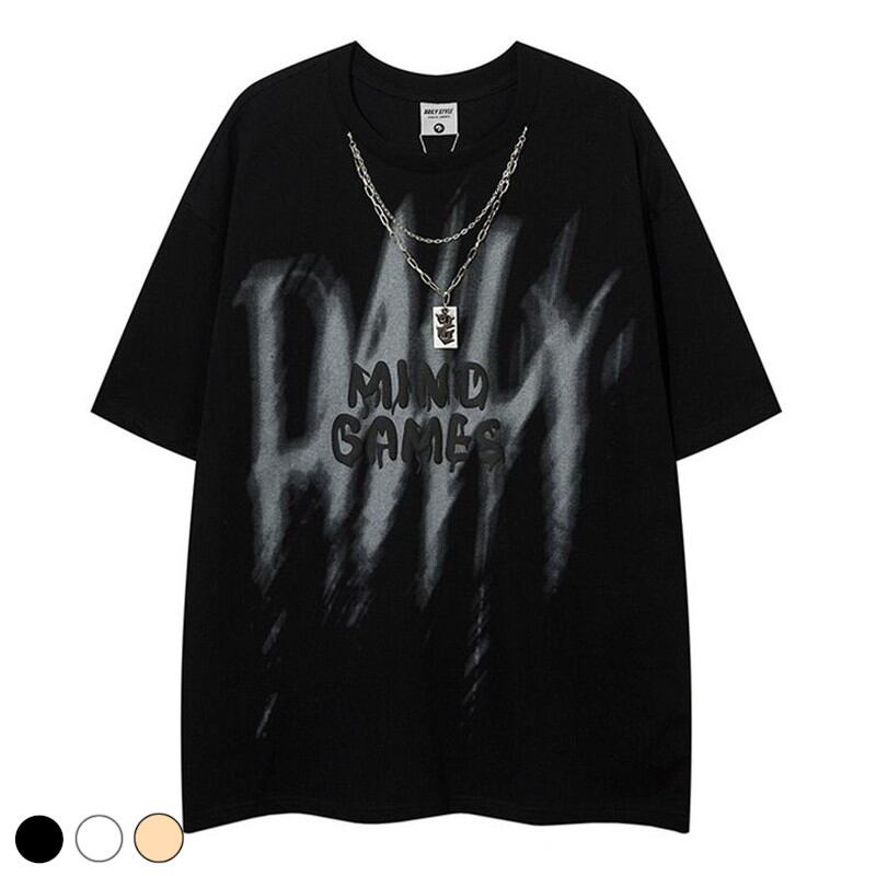 2color ユニセックス Tシャツ 半袖 ネックレス付き グラフィティプリント オーバーサイズ ストリート系ファッション メンズ レディース ストリート系女子 ms763491128704 | Mi/ST ミスト
