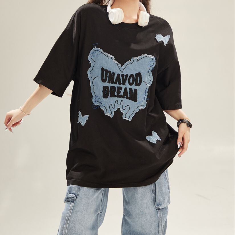 2color ユニセックス Tシャツ 半袖 バタフライ ワッペン 刺繍 オーバーサイズ ストリート系ファッション メンズ レディース ストリート系女子 ms704775449457 | Mi/ST ミスト